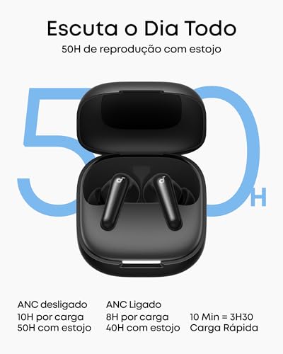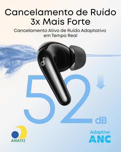• Cancelamento de Ruído Adaptativo em Tempo Real: Reduz ruídos em até 52 dB, ajustando-se automaticamente ao seu ambiente.